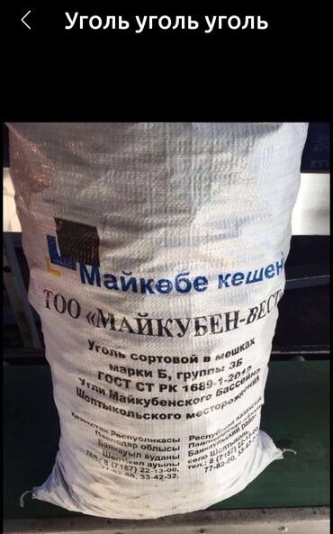 Уголь, уголь майкубен г павлодар отборный в заводской упаковке 50 кг.