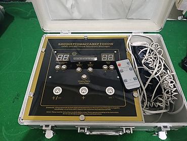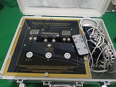 Аппарат для рефлексо- и меридианного массажа в чемодане-кейсе FOHOW. Панель управления с цифровыми индикаторами, кнопками регулировки и русскими подписями: