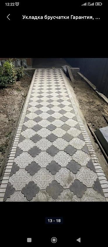 Укладка брусчатки, бордюры,лотки и т.д.быстро и качественно. Укладка всех видов брусчатки.литый, прессованный,евро, элитный,беш таш. А также продажа евро брусчатки высокого качества.Аллея,Бишкек, А...