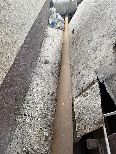- Массивная круглая стальная труба с приваренными опорными фланцами по краям.