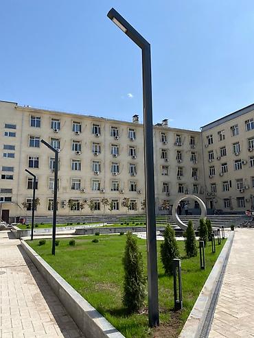 Современные уличные фонари с LED-подсветкой для дворов, парков, аллей, набережных, кафе и частных территорий. Лаконичные стойки с угловой «головой» и встроенной световой линией по стойке создают равномерное, комфортное освещение и выразительный архитектурный акцент.