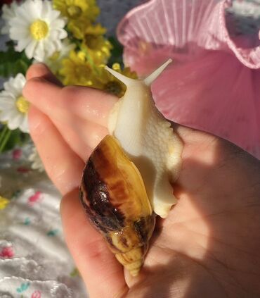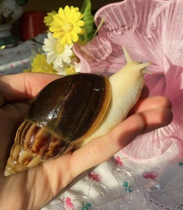 Ахатины .разного возраста .Проглистованы.Здоровые.Активные..Есть4 месяца -400сом штука.6 месяцев 600сом ,два года 2000...Просто подарить - нету!!!эфективно борятся с некоторыми видами экземы,лишая....