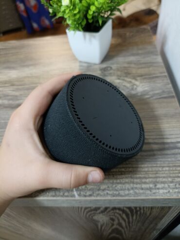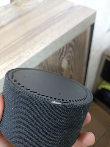 Умная колонка (компактная, тканевая отделка, цвет — черный. Яндекс Алиса. К сожелению коробка не сохранилась!Есть некие повреждения с тканью и немного синих чернил на ткани. В остальном всё хорошо. Звук хрепит немного.