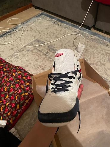 - Цвет: белый с темно‑синими и красными вставками, черные шнурки
