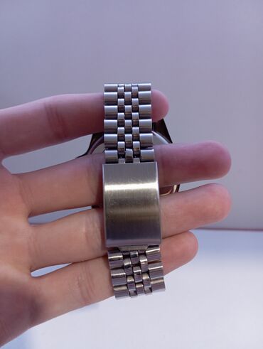 - Корпус и браслет из нержавеющей стали, пятизвенный стальной браслет с массивной раскладной застёжкой.