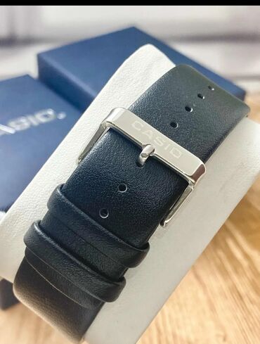 - Черный ремешок из кожи/эко-кожи с классической пряжкой и логотипом CASIO.