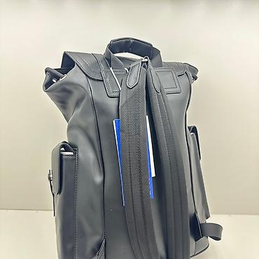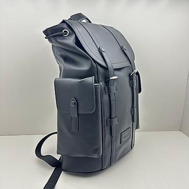 Черный рюкзак из гладкой кожи с клапаном на двух ремешках с пряжками. Модель оснащена основным отделением, закрывающимся на шнурок с люверсами, и двумя боковыми накладными карманами с клапанами на кнопках. Регулируемые плечевые ремни обеспечивают комфорт при ношении. Стильный и практичный аксессуар для повседневного использования.