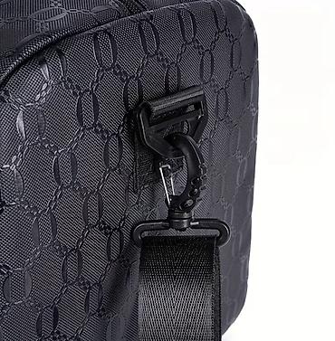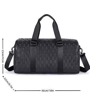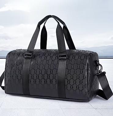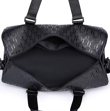 Спортивно-дорожная сумка, цвет: черный, тисненый геометрический узор по всему корпусу.