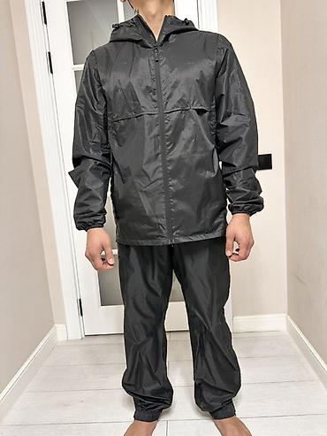 Дождевик-накидка с капюшоном, удлиненный - Цвет: темно‑серый, черный и белый - Длина ниже колена, полностью закрывает бедра и колени - Центральная застежка на кнопках по всей длине - Капюшон с ут...