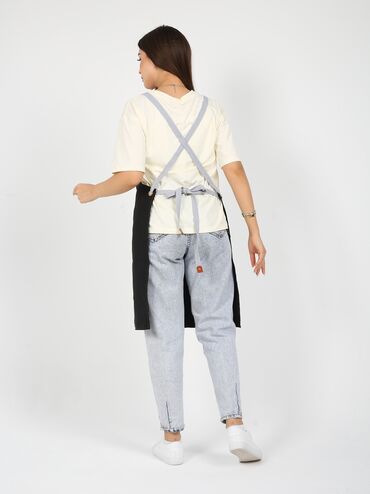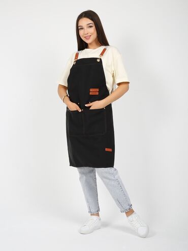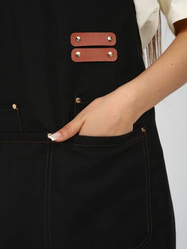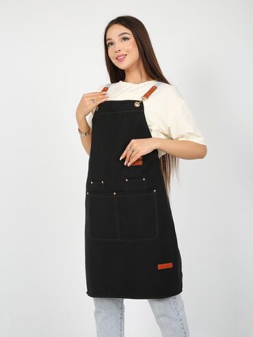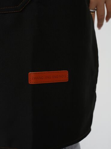 Черный поварской китель унисекс с длинными рукавами, предназначенный для профессионального использования на кухне. Китель имеет воротник-стойку и застежку на кнопках, расположенную асимметрично. На...