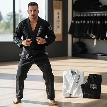 Кимоно для бразильского джиу-джитсу Bravos в двух цветовых решениях: черном и белом. Комплект включает куртку, брюки .