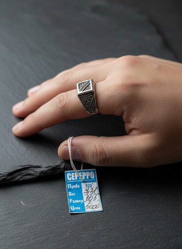 Серебряное кольцо 925 пробы в подарочной коробке. - Материал: серебро 925° - Вес: 5,04 г - Размер: 20 - Дизайн: геометрический прямоугольный верх с контрастными вставками/накладками, лаконичный со...