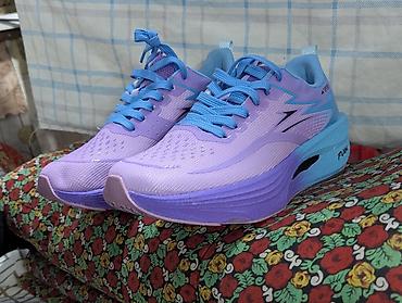 - Подошва: амортизирующая платформа с выраженным перепадом и энерговозвратом; боковые вырезы для снижения веса; износостойкий протектор.