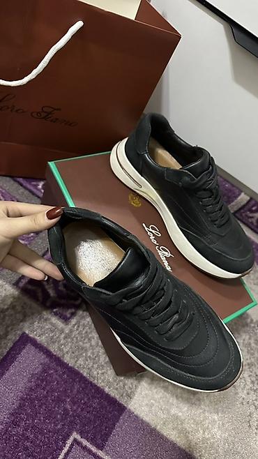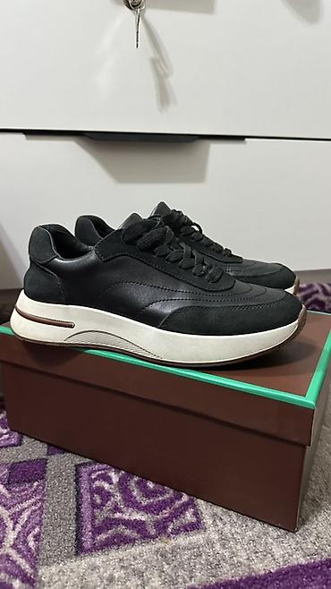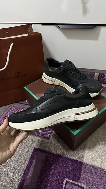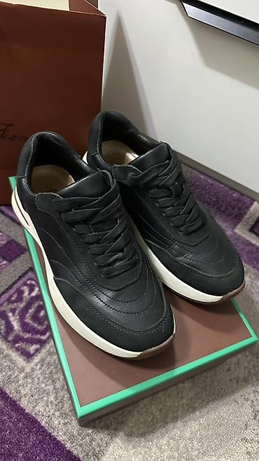 Кроссовки из черной кожи с контрастной белой подошвой.
