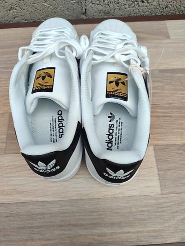 - Фирменные детали: золотой язычок с логотипом Trefoil, надпись Superstar на боковой панели, логотипы на пятке и стельке