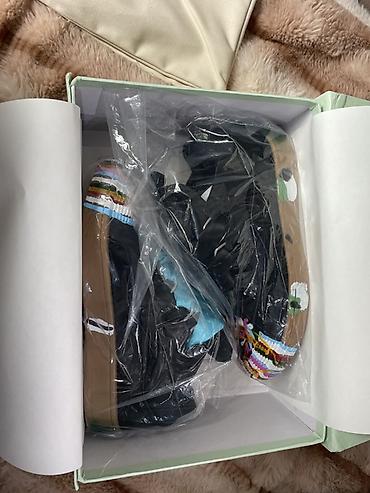 - В комплекте коробка Lanvin Paris и два набора лент‑шнурков: чёрные и голубые атласные.