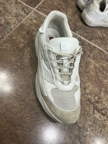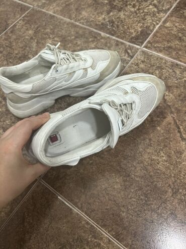 Белые кроссовки австралийский бренд Hogl на массивной подошве. Покупала за 13 000 сом по хорошей скидке, без скидки цена еще дороже. Носила мало, размер не подошел. Но требуется небольшая чистка снаружи.