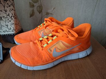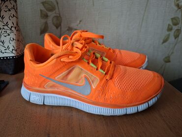 Кроссовки Nike Free 5.0, цвет ярко‑оранжевый с серым логотипом.