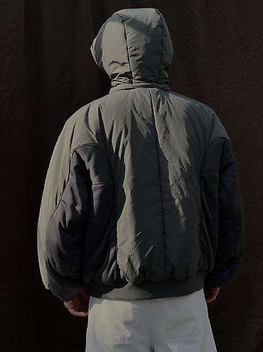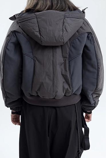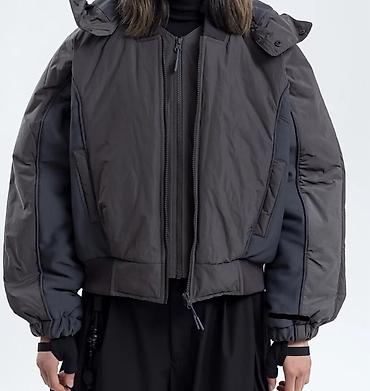 - Детали: стёганые панели, анатомические швы на рукавах, эластичные манжеты с фиксацией, воротник-стойка без капюшона или трикотажный бомбер-ворот при отстёгнутом капюшоне.