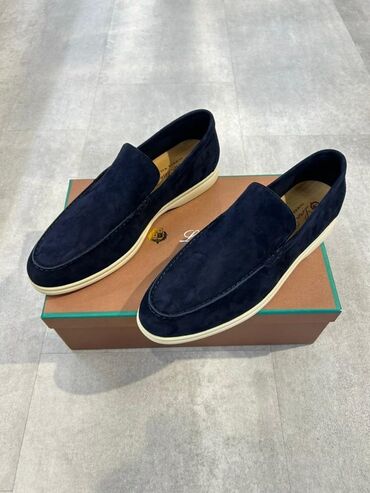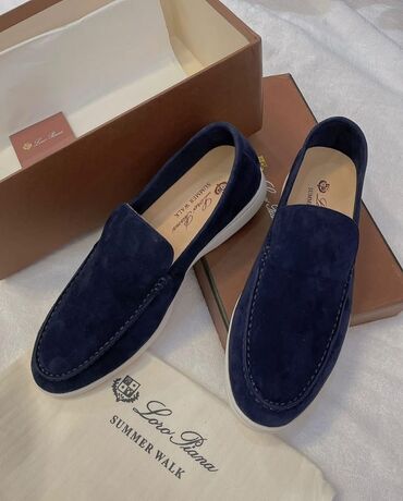 Кеды/лоферы Loro Piana (модель Summer Walk), размер 43. - Цвет: темно‑синий верх, светлая подошва. - Материал верха: мягкая кожа/нубук (по фото — фирменная фактура LP). - Подошва: контрастная, све...