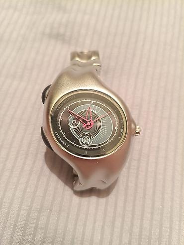 - Цветовая гамма: матовый металлический серо-серебристый корпус и браслет, черный циферблат с белой разметкой и красными стрелками.