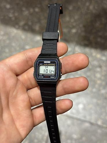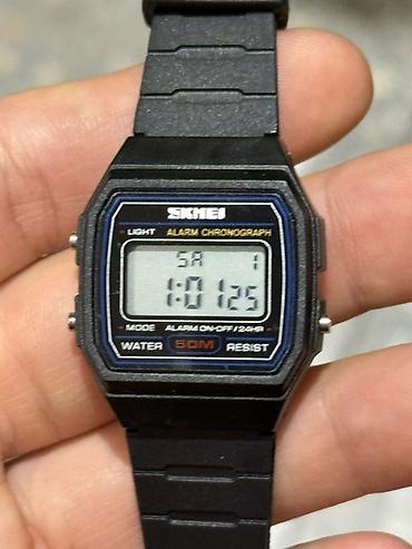 - Функции: часы/минуты/секунды, будильник, хронограф (секундомер), индикация 24/12 ч, подсветка (LIGHT)