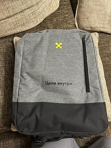 Городской рюкзак серо-черного цвета с логотипом и надписью «Цели внутри».