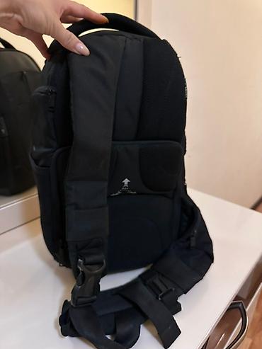 Черный рюкзак переноски техники. Изготовлен из прочного материала, имеет несколько отделений на молнии. Внутренняя часть рюкзака оснащена мягкой оранжевой подкладкой, обеспечивающей дополнительную защиту содержимого. Эргономичные регулируемые лямки и вентилируемая спинка обеспечивают комфортное ношение даже при длительном использовании. Рюкзак оснащен боковым карманом и петлями для крепления дополнительных аксессуаров.