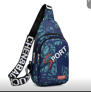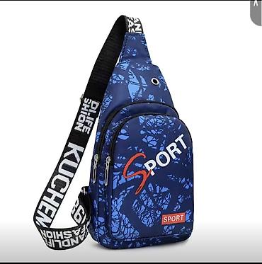 - Вариант 2: ткань синих оттенков с принтом и крупной надписью “SPORT”; широкий текстовый ремень.