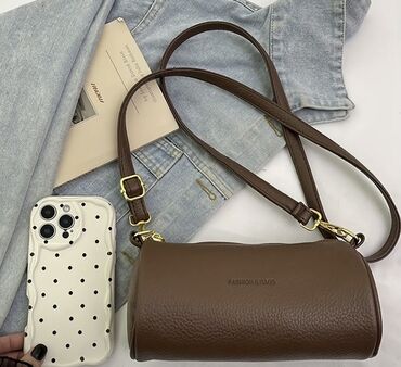 Компактная сумка-багет цилиндрической формы коричневого цвета