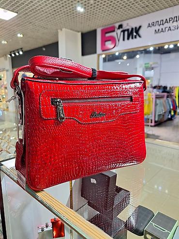 Женская сумка-тоут/боуллинг в ярко‑красном цвете с фактурой под кроко. - Размеры: 33 × 12 × 17 см (Д × Ш × В). - Материал верха: текстурированный под «крокодил». - Жесткое дно с металлическими нож...