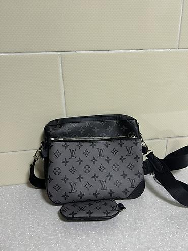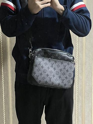 Сумка через плечо Louis Vuitton, компактный формат. Особенности: - Цвет: черный с фирменным монограммным узором LV в графитовом тоне. - Материалы: фактурная кожа/эко-кожа с гладкими кожаными встав...