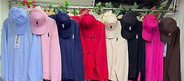- Возможны наборы в едином цвете (свитшот + кепка); на фото также показаны носки в тон.