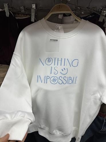 - Белый с голубым принтом “NOTHING IS IMPOSSIBLE”