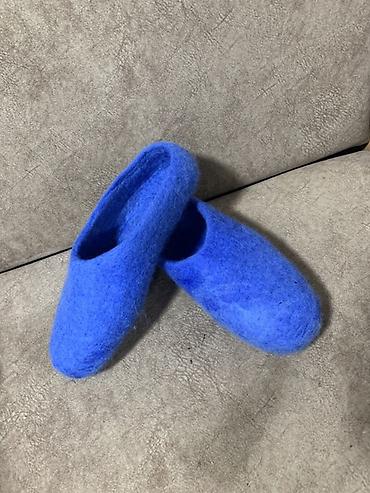 Валяные тёплые тапочки из шерсти, насыщенного василькового цвета.