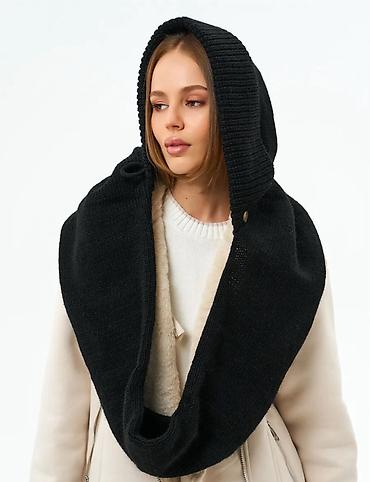 Вязаный капюшон-шарф (худ‑снуд), цвет: черный.