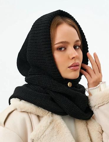 Трикотажный балаклава-шарф (hood-scarf) новый с этикеткой женский купила на озоне за 1980 сомов - Форма: капюшон с удлинёнными полотнами по бокам, которые можно носить как шарф или завязывать. - ...