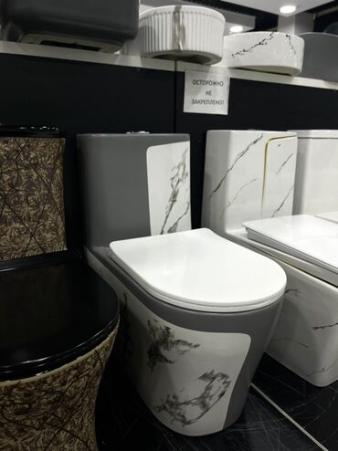 Унитаз-компакт с бачком, выполненный в современном стиле с уникальным дизайном. Чаша и бачок имеют серую основу с белыми мраморными разводами, придающими изделию элегантный вид. Сиденье белого цвета с плавными линиями гармонично дополняет дизайн. Эта модель идеально подходит для создания стильного и функционального интерьера ванной комнаты.