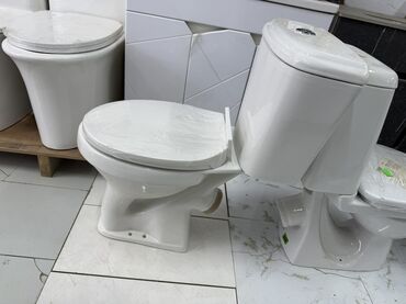 Напольный унитаз-компакт из сантехнического фарфора/фаянса, классический белый.