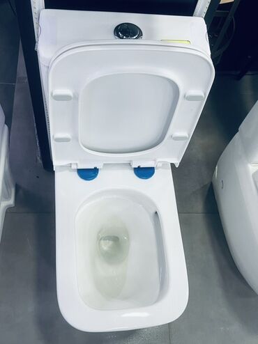 Напольный унитаз-компакт с современным прямоугольным дизайном.