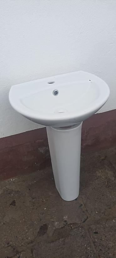 Раковина-умывальник из санфаянса с пьедесталом. Размер: 45на45см