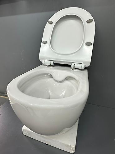 Подвесной унитаз белого цвета с открытым бачком. Керамическая конструкция и гладкая поверхность обеспечивают легкую очистку и долговечность. Универсальный дизайн подойдет для любой ванной комнаты.