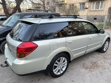 Подходит для города и поездок за город: полный привод, практичный кузов, удобная багажная система и фаркоп для прицепа или крепления велодержателей. Номера: KG 01, регистрация Кыргызстан. Модель обозначена на задней двери — Outback Subaru.