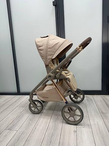 Универсальная коляска 2-в-1 (люлька + прогулочный блок), бежевый цвет. люлька новая.