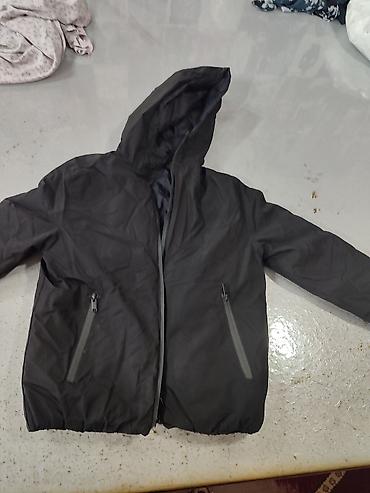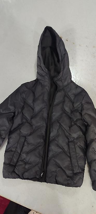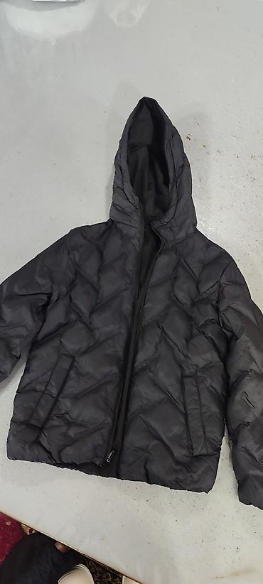 Универсальная черная двусторонняя куртка-пуховик с капюшоном,на 8-9 -10 лет , состояние х