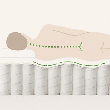 Универсальная модель пружинного матраса, состоящая из независимого пружинного блока, поддерживающего тело спящего, термофиксированного фетра, продлевающего срок эксплуатации матраса, пенополиуретан который обеспечивает расслабление мышц и приятный здоровый сон, и наконец, кокосовая койра, который обеспечивает жесткость матраса.