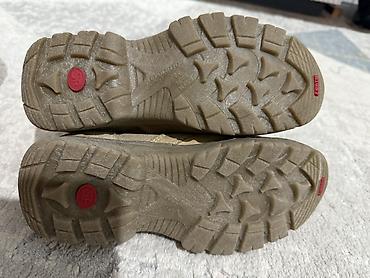 Универсальные ботинки бежевого цвета на шнуровке. Модель сочетает замшевые элементы в нижней части и прочный текстиль в голенище, что обеспечивает комфорт и долговечность. Высокое голенище и шнуровка гарантируют надежную фиксацию стопы и голеностопа. Ботинки оснащены прочной подошвой с выраженным протектором для хорошего сцепления с различными поверхностями, что делает их подходящими для активного отдыха, походов или повседневного использования в условиях, требующих надежной обуви.