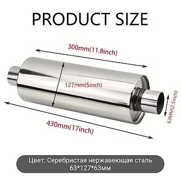 Продаю прямоточный глушитель‑резонатор универсальный Материал: нержавеющая сталь, полированная, цвет серебристый. Размеры: - Общая длина корпуса: 300 мм (общая длина с патрубками ~430 мм) - Ди...