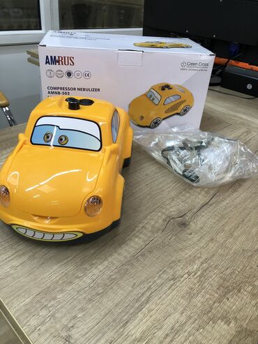 •имеет звуковой сигнал и светящиеся фары. • Все аксессуары убираются в «капот» машинки, а шнур питания в «багажник». •Предназначен для профилактики и лечения различных респираторных заболеваний аэрозольными лекарственными средствами