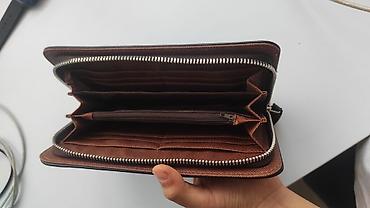 - Внутри: два основных отделения, центральный отсек на молнии для монет, множество карманов для карт по обеим сторонам, дополнительные боковые отделения для купюр/документов.